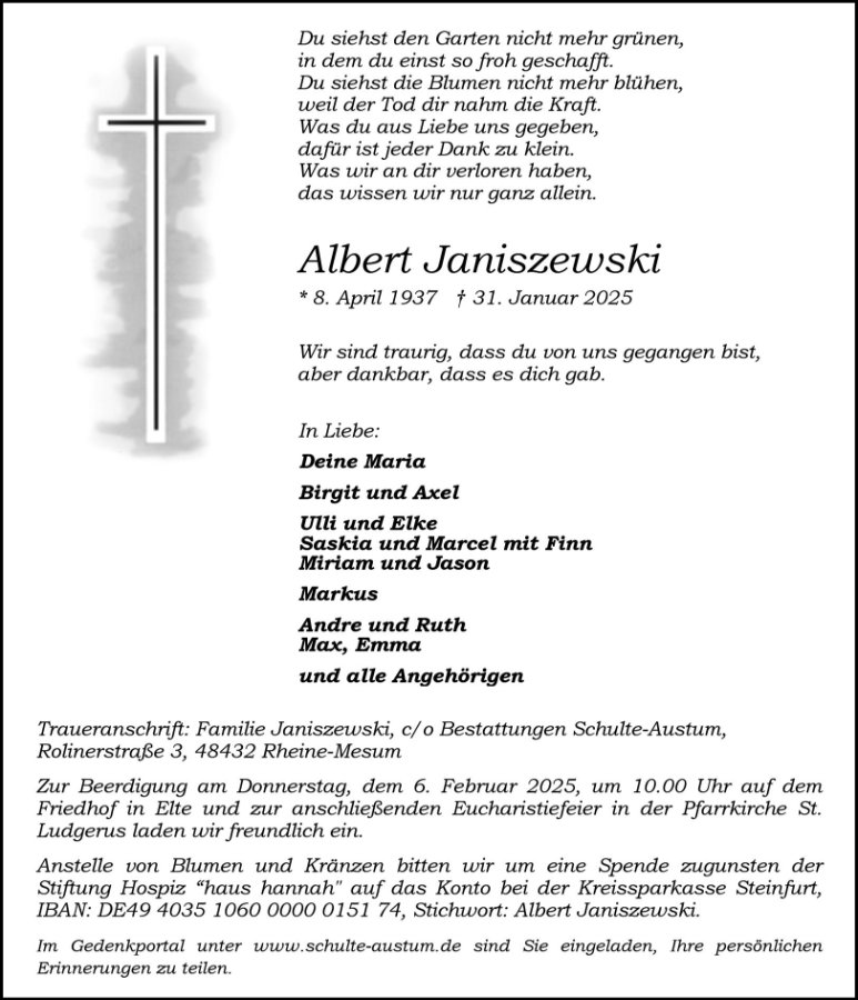 Adalbert Janiszewskigestorben am 31. Januar 2025