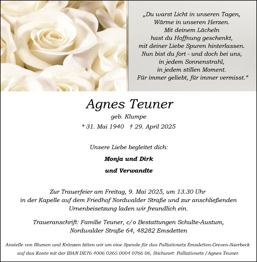 Agnes Teunergestorben am 29. April 2025
