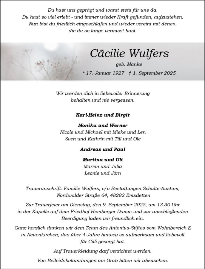 Cäcilie Wulfers geb. Manke