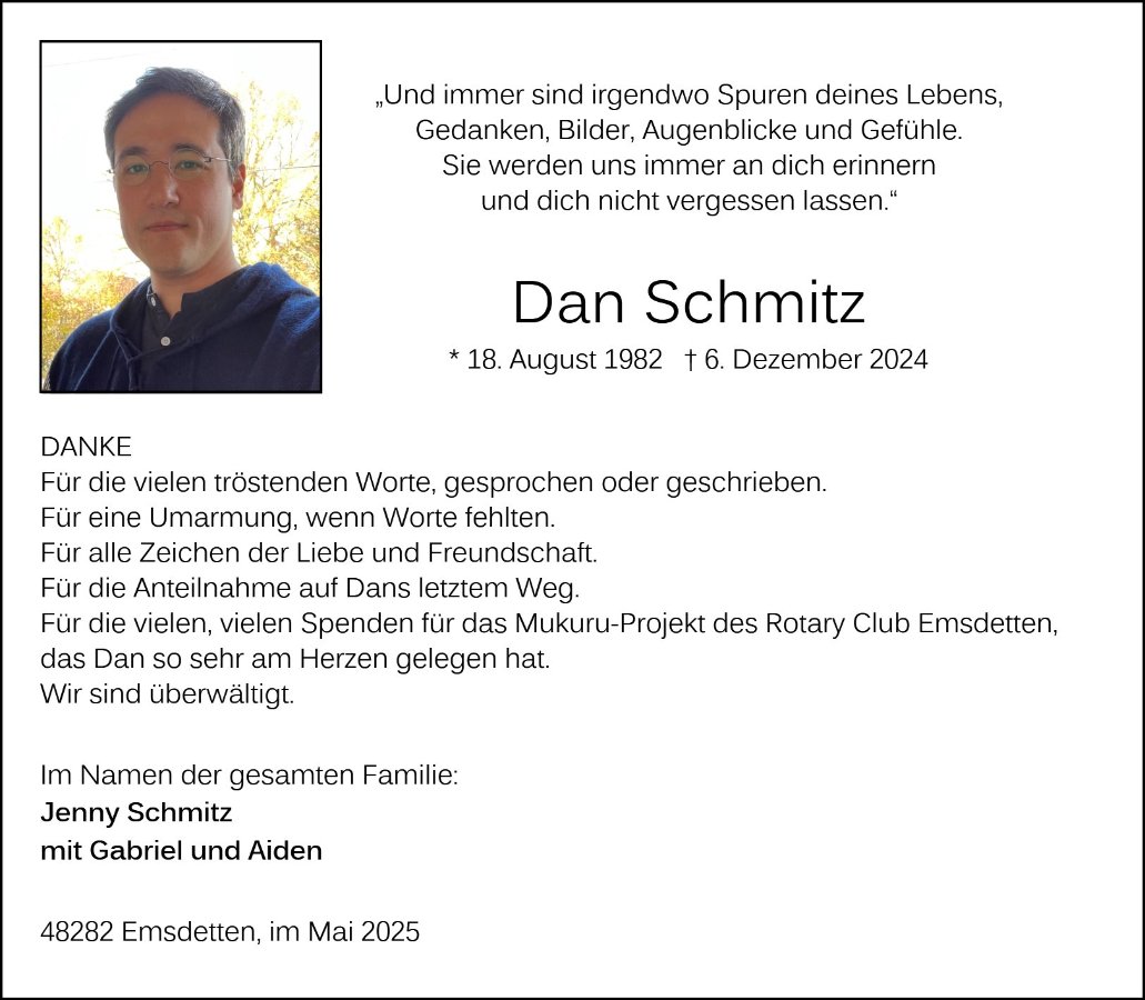 Dan Schmitzgestorben am 6. Dezember 2024