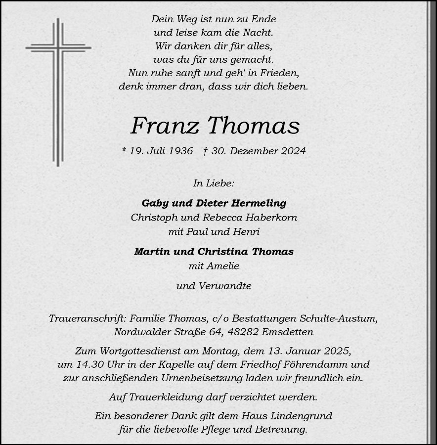 Franz Thomasgestorben am 30. Dezember 2024