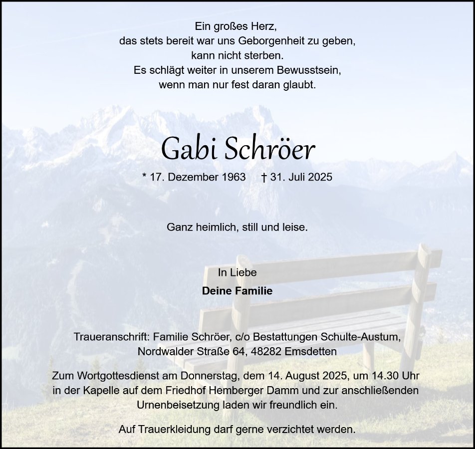 Gabriele Schröergestorben am 31. Juli 2025