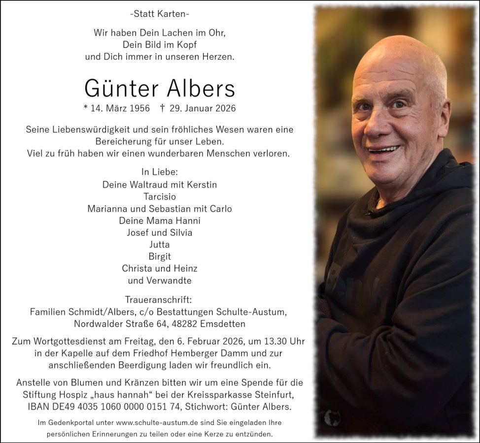 Der Familie Albers mein aufrichtiges Beileid und viel Kraft für die Zukunft