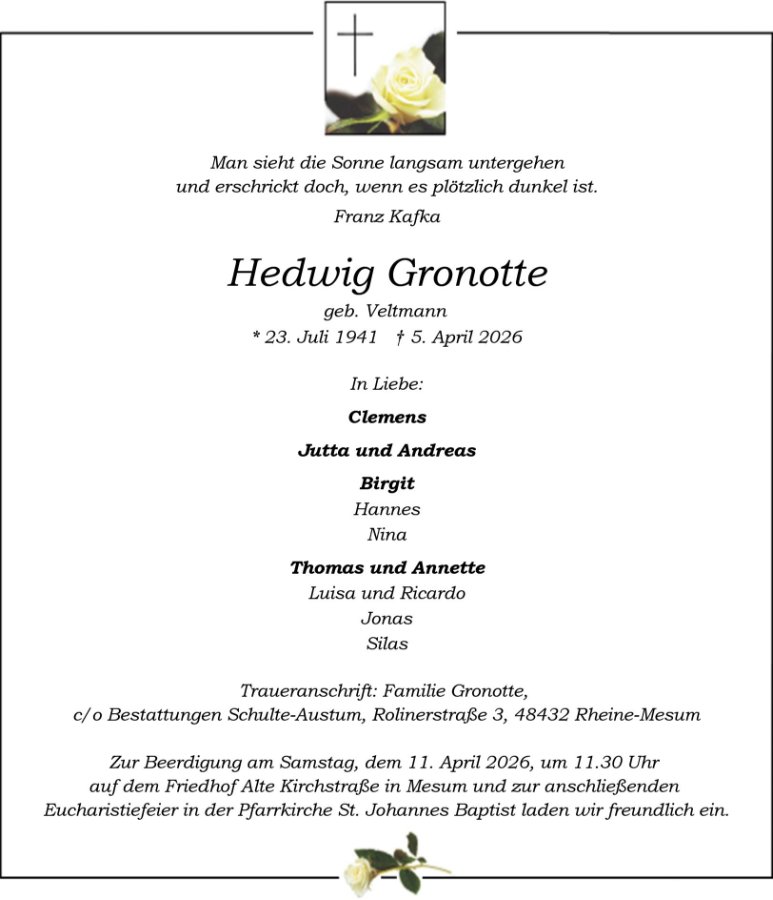 gestorben am 5. April 2026 in Mesum