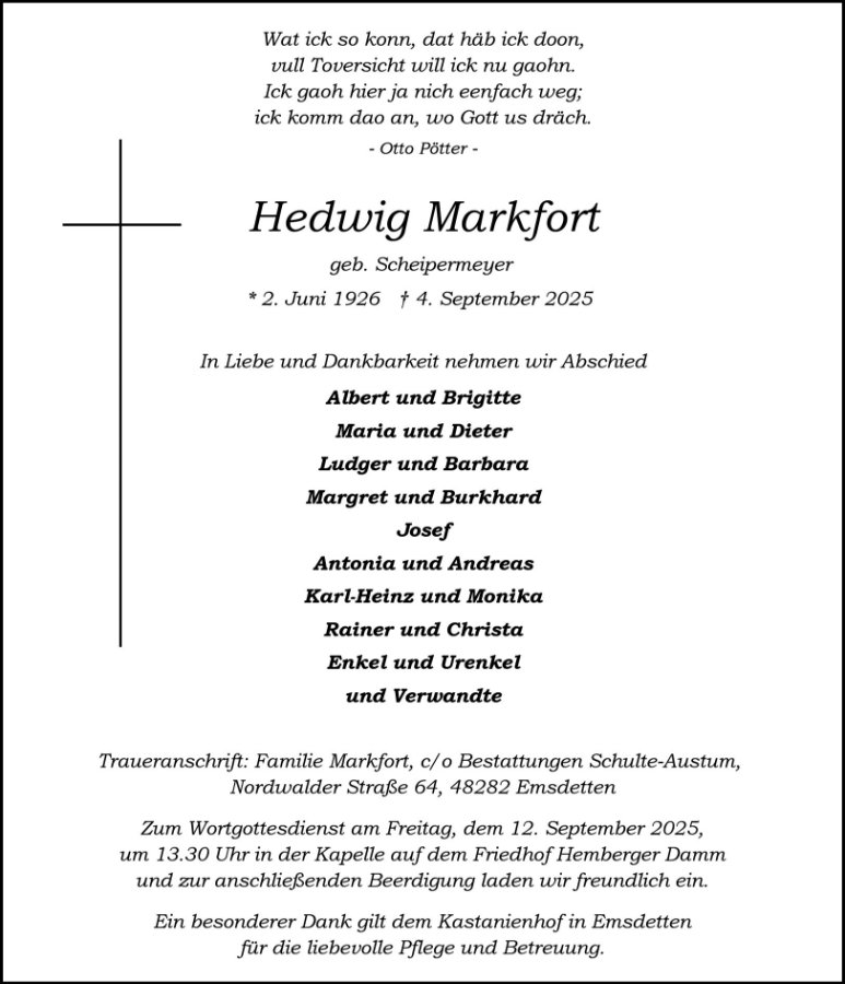 Hedwig Markfortgestorben am 4. September 2025