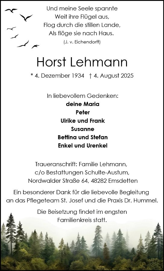 Horst Lehmanngestorben am 4. August 2025