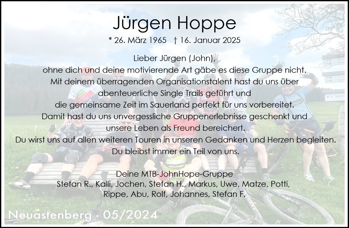 Schöne Erinnerungen an gemeinsame sportliche Touren werden für immer bleiben.