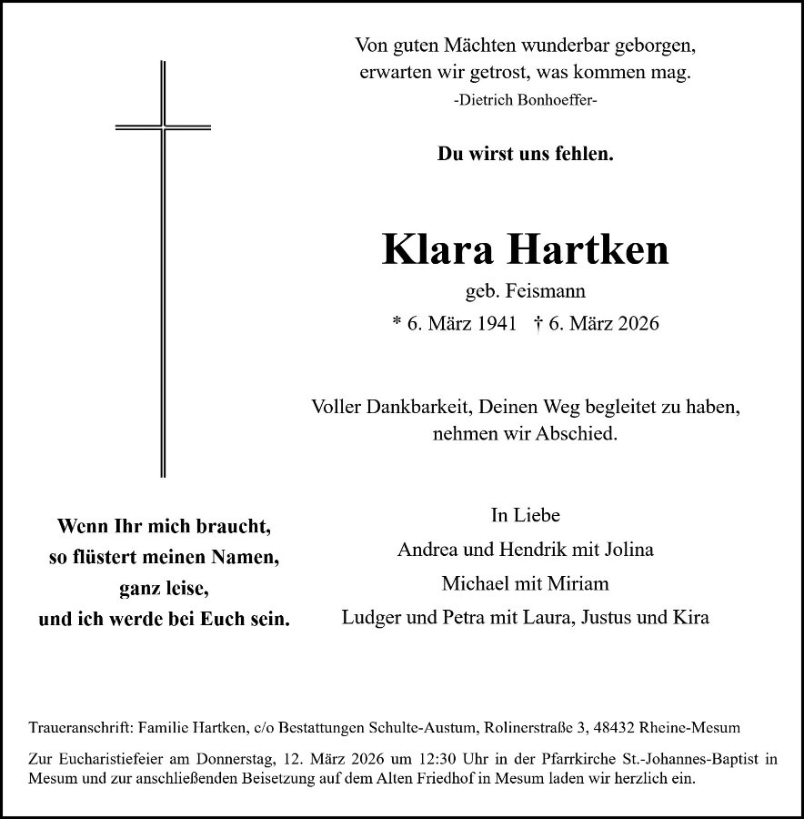 gestorben am 6. März 2026 in Rheine-Mesum