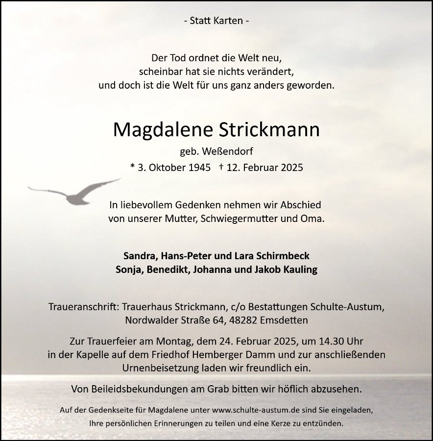 Sprechen Sie im Kondolenzbuch den Hinterbliebenen Ihr Beileid aus und teilen Sie persönliche Gedanken und Erinnerungen mit anderen.